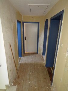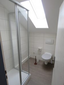 EG.: Überdachter Eingangsbereich, Windfang/Garderobe, Flur, Wohnen/Essen, Küche, Dusche/WC/Durchlauferhitzer, Durchgangszimmer, Wohnzimmer im Anbau mit Kaminanschluss und Ausgang in den Garten und auf die Südterrasse, Zugang zu 2 Räumen die über der Garage liegen, Zugang zur Doppelgarage.