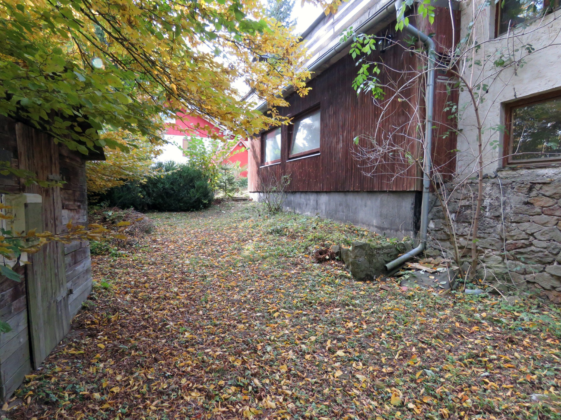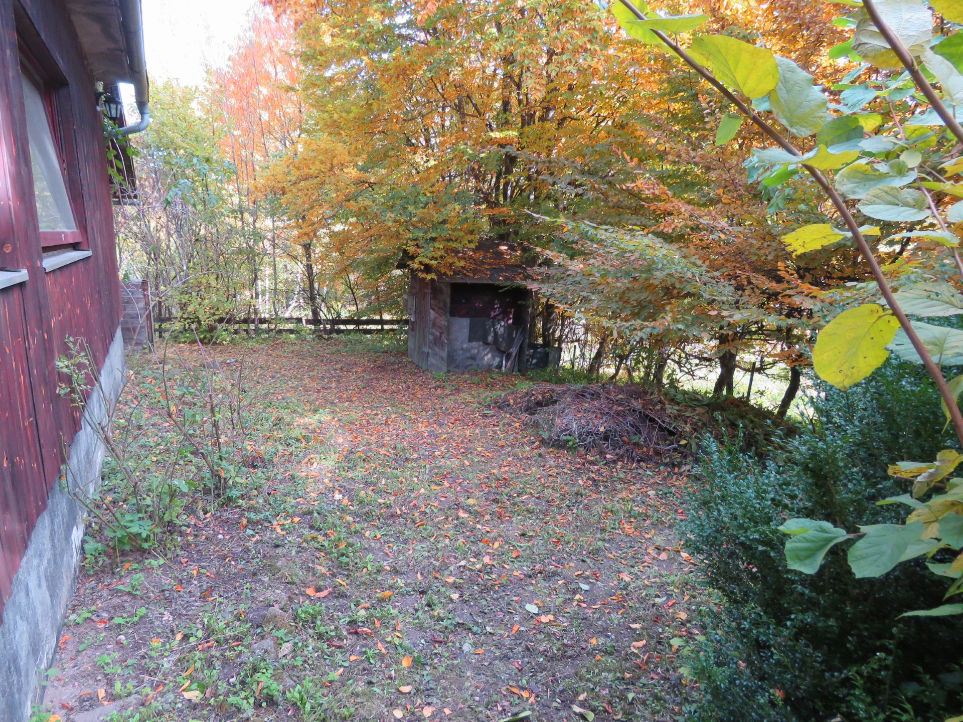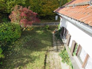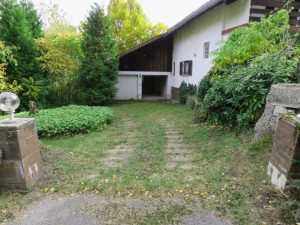 Das Grundstück hat eine Größe von ca. 686 m², ist zum Teil eingezäunt und reichlich bepflanzt mit verschiedenen Sträuchern und Bäumen, Ahorn, Bärlauch, Blumen. Vorgarten. Gute Zufahrt. Befestigter Hofraum. Ein kleines Gartenhaus in Holzbauweise mit Stromanschluss befindet sich im östlichen Teil des Grundstücks.